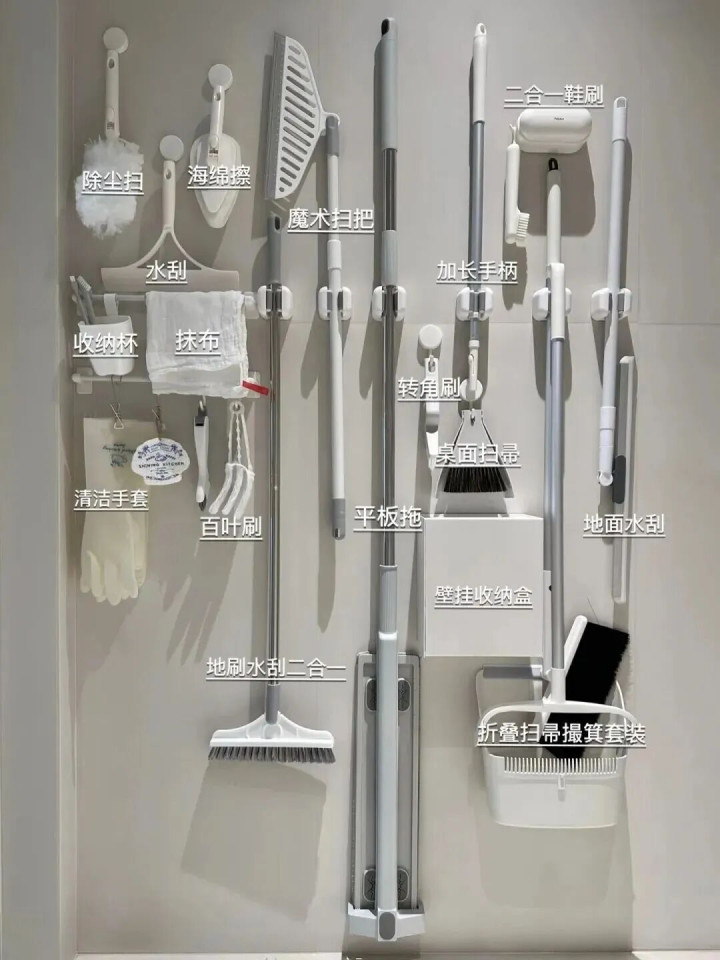 那么,聪明的收纳方式是什么呢?当然是给扫把和拖把“洗个澡”,然后把它们丢到阳台晾一晾,让它们好好透透气,保持干爽清新。把它们放在空气流通的地方,这样既清爽又能保持卫生,绝对是“全网最强清洁工具存放法”。